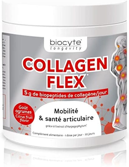 Le COLLAGEN FLEX de Biocyte est classé quatrième. Ce complément contient du collagène marin hydrolysé de première qualité et une combinaison de glucosamine, de chondroïtine et de curcuma pour aider les articulations. En outre, le fabricant affirme que la composition sans gluten, sans OGM et sans dioxyde de titane du produit contribue à sa haute qualité.
